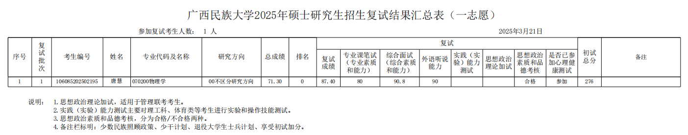 beats365官方网站2025年硕士研究生招生一志愿复试成绩汇总表: