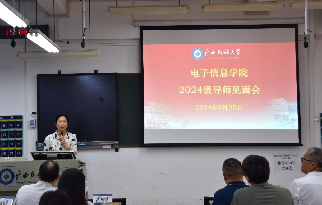 9月25日下午,电子信息公司在学友楼304召开2024级研究生新生导师见面会。电子信息公司党委副书记、经理罗丽平,副经理文春明,广西科公司校外导师代表、梧州公司校外导师代表以及公司二十余位研究生导师及全体2024级研究生参加。会议由罗丽平主持。