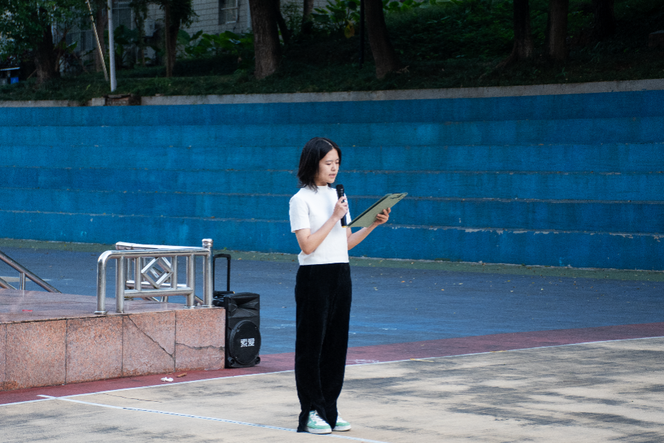 晨光熹微,7时20分,升旗仪式正式开始。国旗护卫队身着戎装,昂首挺胸,迈着整齐而坚定的步伐,护送鲜艳的五星红旗至升旗台。雄壮的国歌奏响,五星红旗冉冉升起,全体师生庄严肃立,高声共唱国歌,行注目礼。
