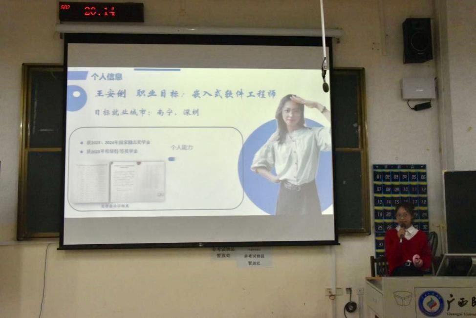 在本次决赛中,共计16名参赛选手分不同的赛道进行比拼。其中成长赛道7名,就业赛道5名,研究生赛道4名。在成长赛道上,7位选手围绕职业发展规划的科学性以及如何实现职业目标进行了阐述;在就业赛道及研究生赛道上,9位选手结合PPT,陈述了个人的求职意向、就业路径以及具体措施,深度剖析自身就业的优势劣势。通过激烈的角逐,22物联网1班王安俐同学获得成长赛道金奖,22自动化1班孟德昕同学获得本科生组就业赛道金奖,23电子信息研究生班程扬同学获得研究生组就业赛道金奖。