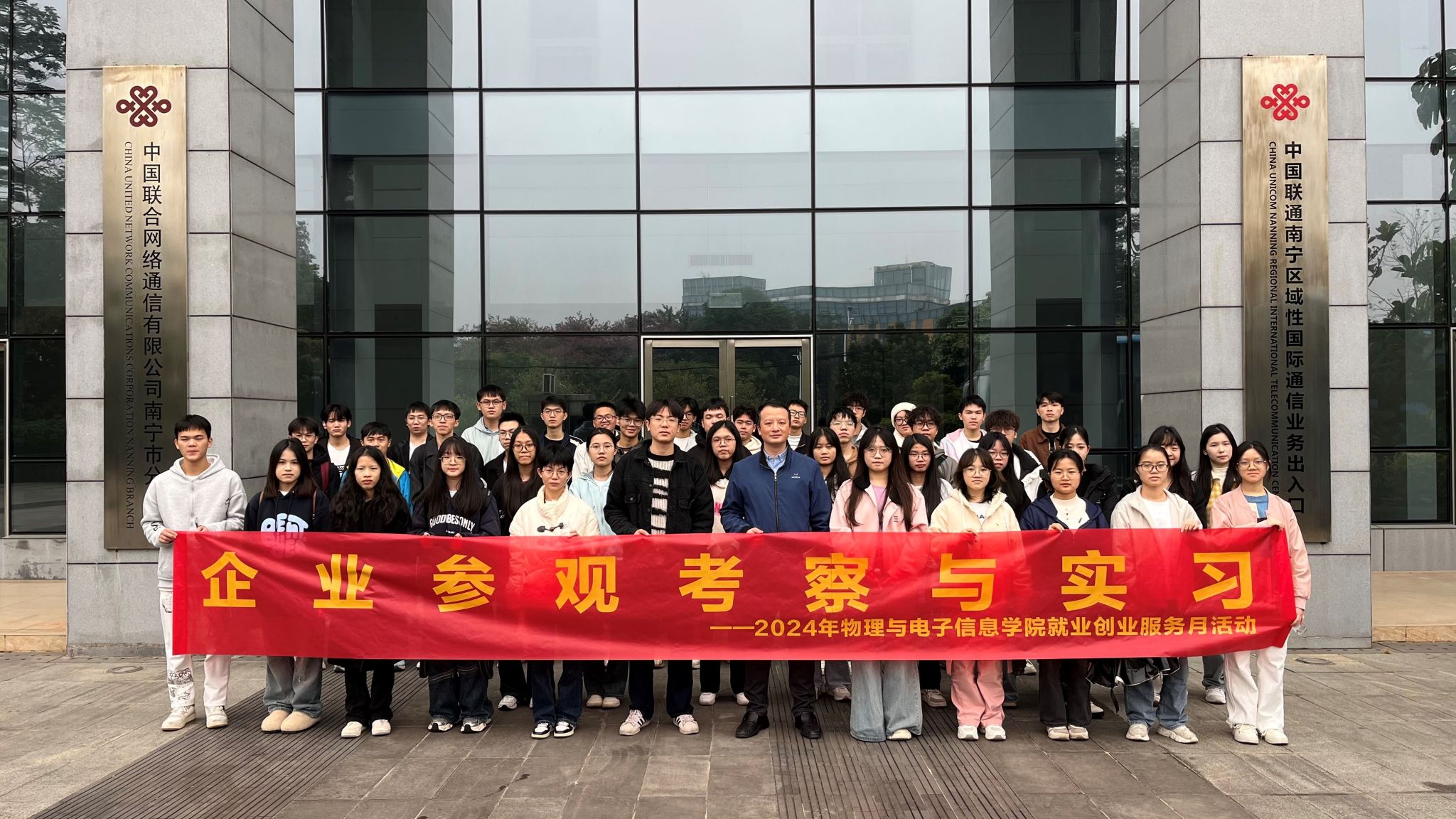 为深入推进产教融合,拓宽员工就业与实习渠道,12月10日下午,物理与电子信息公司党委副书记罗少科、电子信息系主任王擎宇、通信工程系教师蔡凌徽、辅导员邓云斌及电子信息工程专业、通信工程专业100余名员工代表一行前往中国联合网络通信有限公司南宁市分公司开展座谈交流。
