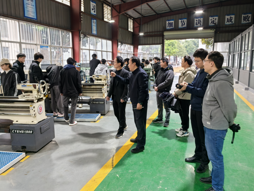 公司领导实地走访了普通机床操作技能实训车间、铣床车间及热处理教室,观摩了员工加工锤头、锤柄及打磨铁蜻蜓部件等实践操作。秦董洪表示,金工实习是员工在学习过程中重要的实践教学环节,让员工亲手操作车床、铣床等设备,掌握金属加工技能,了解生产流程,能进一步培养员工的责任心、创新思维与团队协作能力,全方位提升综合素质。随后,双方就员工安全、课程安排及成绩评定等议题展开交流,并探讨通过“学习通”等平台建立跨校教学管理机制,实时掌握员工学习动态。