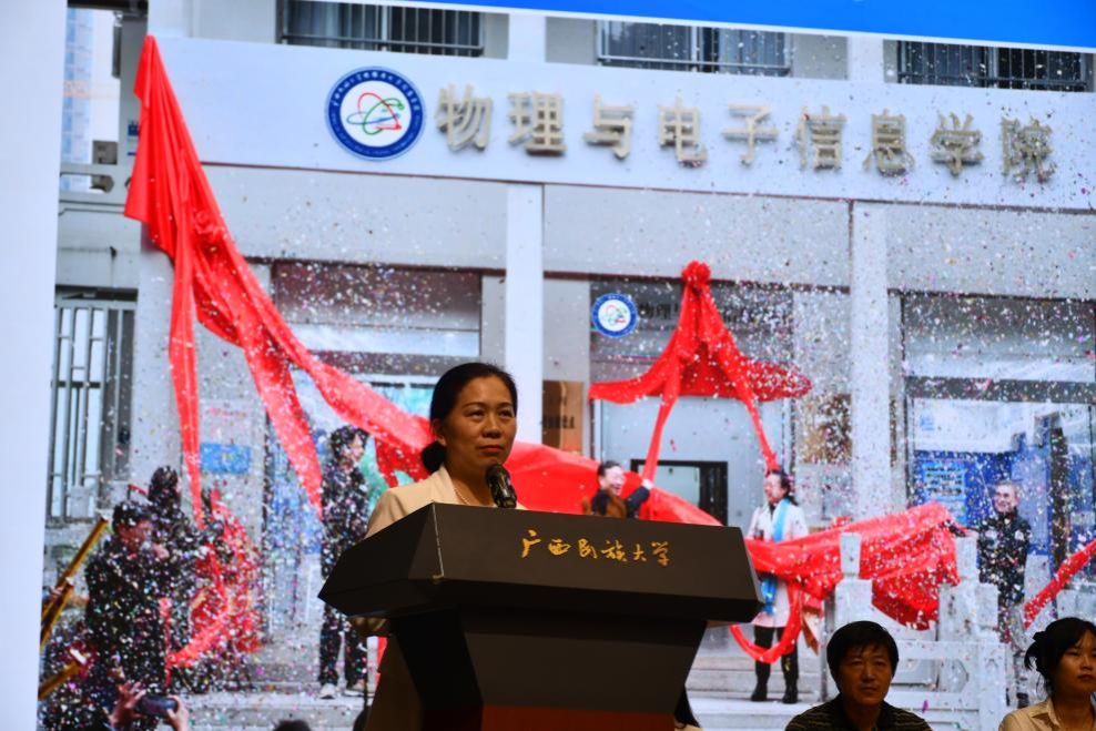 通信工程系王黎明老师作为教师代表发言。他分享带领员工架设流星雷达、攻关电离层探测并保送深造的案例,鼓励大家勇敢走进实验室,在专业竞赛中锤炼真本领,敢于追问、勇于探索,让老员工活因科研而精彩。新生代表2025级电子信息工程专业彭永炎在典礼上发出青春宣言:保持好奇、勇于实践、互助同行,把复杂公式和严谨实验化作成长阶梯。他倡议全体新生以奋斗姿态携手共进,用热情与实干在物理与电子信息的世界里乘风破浪,书写属于自己的精彩篇章。2024级物理学专业硕士研究生谢倩珠作为在校生代表发言。她结合校训分享了自己的学习和科研体会,以“厚德”坚守学术道德,以“博学”跨界计算科学,以“和而不同”在团队协作中保持独立思辨。