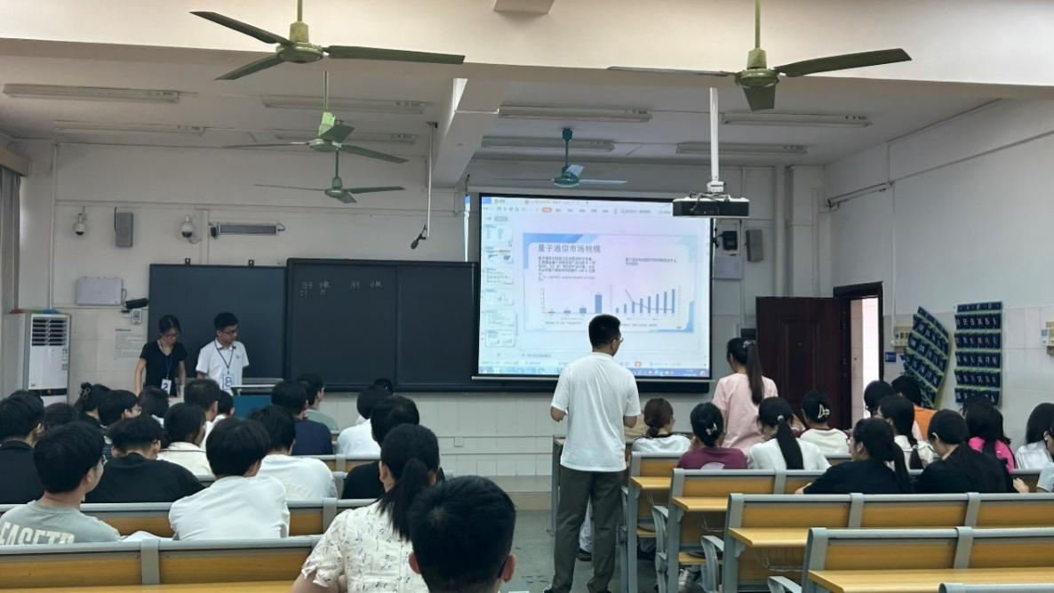 本次翻转课堂主讲人是通信工程系王黎明老师,课程是《光纤通信》,主要内容是“光通信新技术”。课堂教学设计是:由老师讲解上课流程以及评分规则,员工围绕光孤子通信、量子通信等光通信新技术进行陈述,然后由员工分组讨论,互动提问,全程由任课老师引导讨论的范围,总结讨论结果。