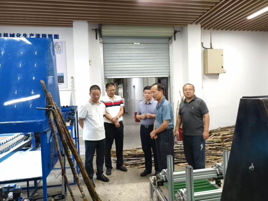 考察团一行在公司副董事长姜明国、团队带头人二级教授李尚平、副经理文春明的陪同下,参观了公司智能装备研发中心实验室。团队带头人李尚平教授介绍了实验室研发的甘蔗智能切种机、蔗种智能快速筛选机、360°蔗芽智能筛选机等装备以及甘蔗智能切梢实验平台。